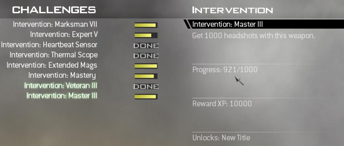 インターベーションヘッドショット1000回まであと・・・48回くらい。